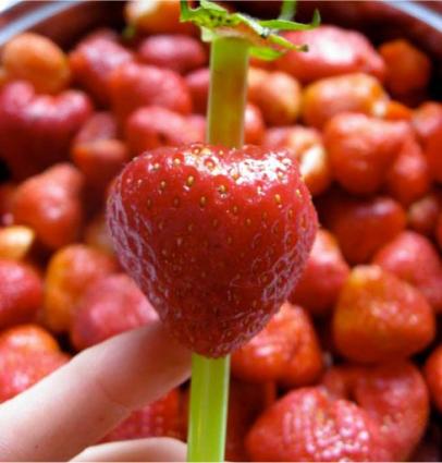 لإزالة الجذع من حبة الفراولة، استخدم قشة شرب العصير.